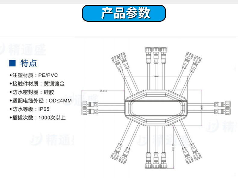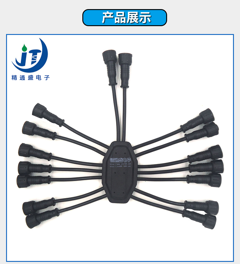 M12-2芯塑胶螺帽公母对接注塑螺纹式
