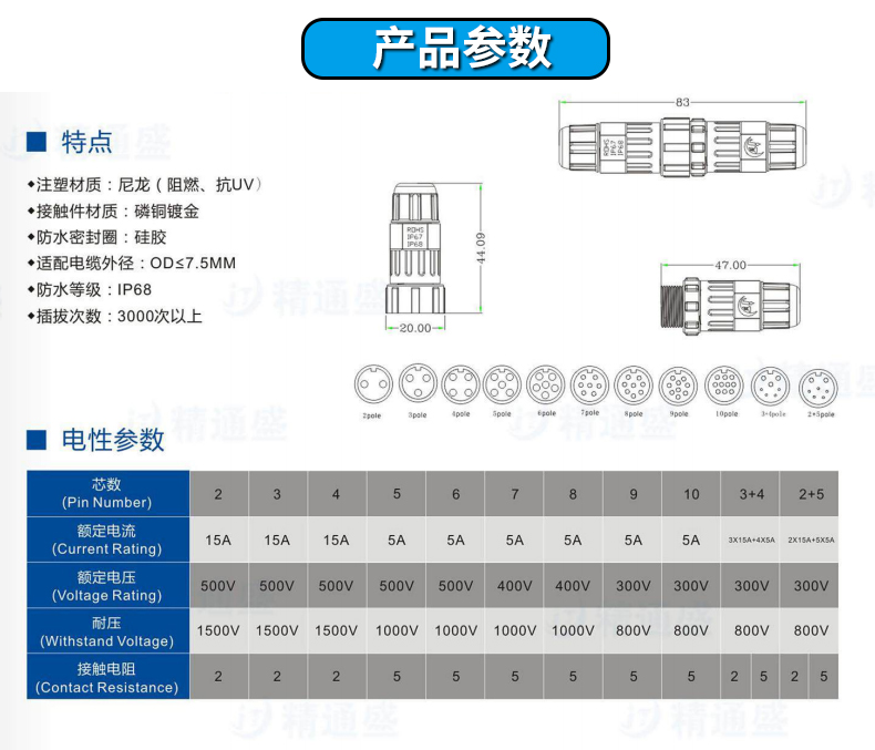 M6 mini防水连接器2~6P