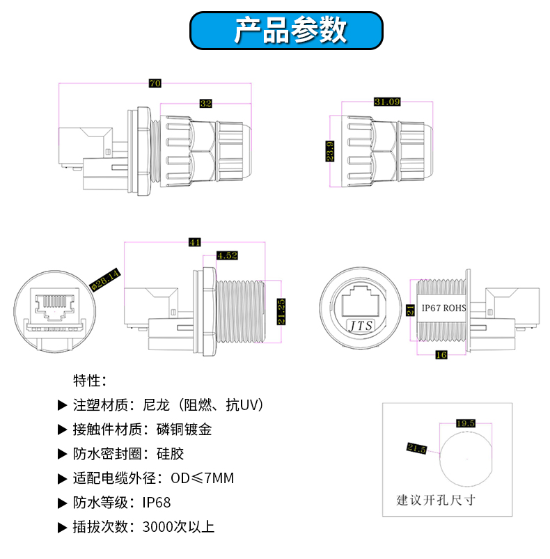 RJ45-0008GK05前装面板式-90度