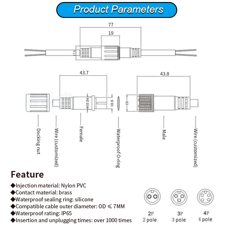 M15-2 core waterproof connecting wire