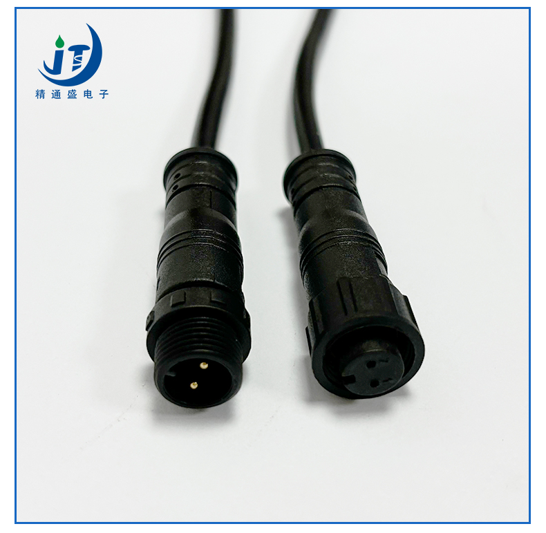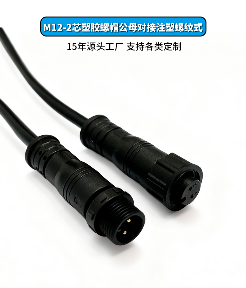 M12-2芯塑胶螺帽公母对接注塑螺纹式